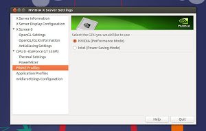 Nella versione versione in fase di sviluppo di Ubuntu 14.04 Trusty è arrivata la nuova versione 0.5 di nvidia-prime aggiornamento che migliora l’integrazione con NVIDIA X Server Settings consentendoci di poter operare sulla scheda integrata e dedicata direttamente dalle impostazioni della scheda grafica Nvidia come possiamo notare dall’immagine pubblicata recentemente dal blog Webupd8.