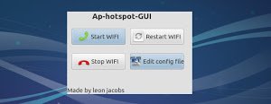 Ap-hotspot-GUI è un semplice interfaccia grafica per Ap-hotspot tool dedicato alla condivisione di una connessione ethernet o internet mobile via Wireless.