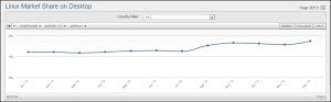 Stando a quanto riportato dal portale Market Share nel 2013 gli utenti Linux sono aumentanti passando dall’1.21 all’1.73%.