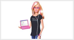 Mattel ha recentemente avviato la commercializzazione della nuova Barbie Computer Engineer una versione della famosa bambola nella quale troviamo a corredo un personal computer portatile, uno smartphone che ricorda molto Apple iPhone.