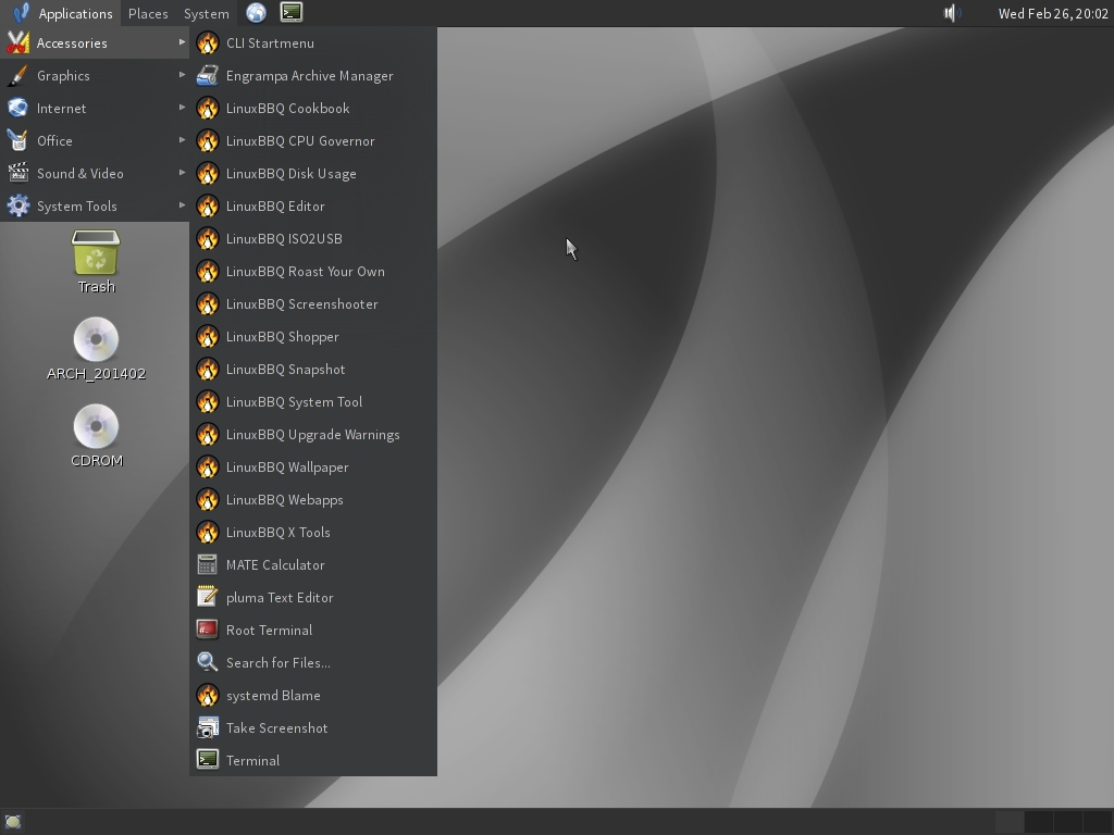 Unica nota negativa è l’installer di LinuxBBQ un set di script d’installazione gestiti da una CLI da terminale che può dar dei problemi soprattutto a nuovi utenti, da notare inoltre la mancanza di un display manager che possiamo installare in un secondo momento. LiveCD / Installabile, dispone anche della possibilità di caricare l’intera distribuzione nella RAM in maniera tale da avere un sistema operativo molto veloce e reattivo da live. Ricordo che i dati d’accesso da live sono bbq sia come user che password una volta inseriti basta digitare startx per avviare l’ambiente desktop Mate.