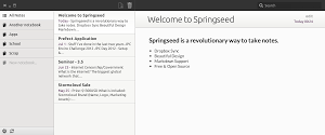 Springseed è una nuova applicazione open source sviluppata per offrire all’utente una semplice interfaccia grafica con la quale gestire al meglio le proprie note ed appunti. Con Springseed potremo creare le notre note e appunti attraverso un’semplice editor di testo con disponibili anche alcuni strumenti per personalizzare la nostra nota conforme le nostre preferenze.