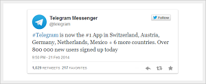 Gli amministratori della nuova applicazione Telegram hanno annunciato di aver riscontrato un vero e proprio boom di attivazioni.