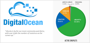 Secondo i dati riportati da Shuttleworth, Ubuntu è la distribuzione più utilizzata in DigitalOcean con il 66,86%, al secondo posto troviamo CentOS con il 18,85%, seguono Debian con il 12,11%, Arch Linux 1,34% e Fedora 0,81%.