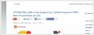 Crytek ha recentemente annunciato che la prossima versione di CryENGINE sarà disponibile anche per Linux
