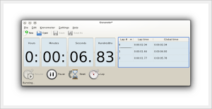 Kronometer è un software, open source specifico per KDE, che ci consente di avere un’utile cronometro da poter utilizzare all’interno del nostro desktop. Tra le principali caratteristiche di Kronometer troviamo la possibilità di avviare, fermare il cronometro attraverso scorciatoie da tastiera personalizzabili oppure direttamente dall’applicazione Kronometer ci consente di memorizzare / gestire facilmente i vari giri con la possibilità di salvare / esportare i risultati, l’applicazione include anche molte personalizzazioni compreso anche la possibilità di cambiare i font, rimuovere ad esempio l’ora e secondi ecc.