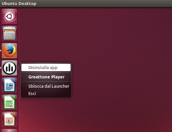 Rimuovere le Web Apps è molto semplice, se abbiamo Unity basta semplicemente avviare l’applicazione e dal collegamento nel Launcher (o barra laterale) cliccare in Disinstalla app.