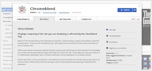 In alternativa se utilizziamo Google Chrome / Chromium possiamo utilizzare l’estensione Chromebleed che verifica ogni siti che visitiamo indicandoci se è colpito o meno dalla falla di OpenSSL.