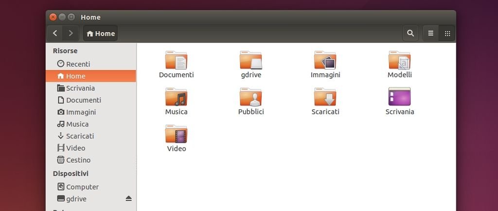 a questo punto avremo i file e cartelle di Google Drive accessibili all’interno della cartella gdrive presente nella nostra home.