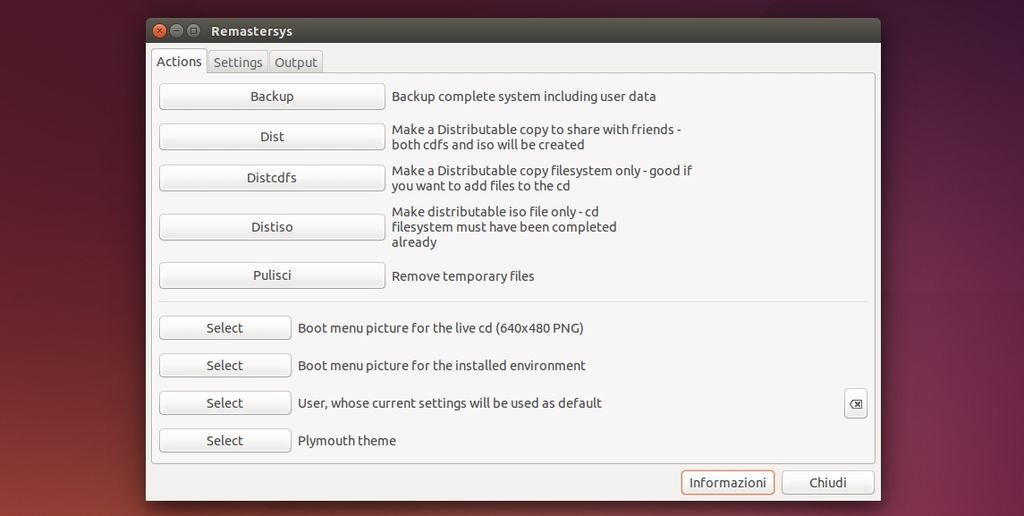 Il nostro amico e lettore Franco F. ha raccolto tutti i pacchetti di Remastersys, corretto eventuali dipendenze per poter utilizzare l’applicazione in Ubuntu 14.04 Trusty e derivate. Personalmente ho testo Remastersys sia in Ubuntu e Kubuntu 14.04 Trusty, molto probabilmente l’applicazione funziona anche in tutte le altre derivate ufficiali e non (penso anche Linux Mint).