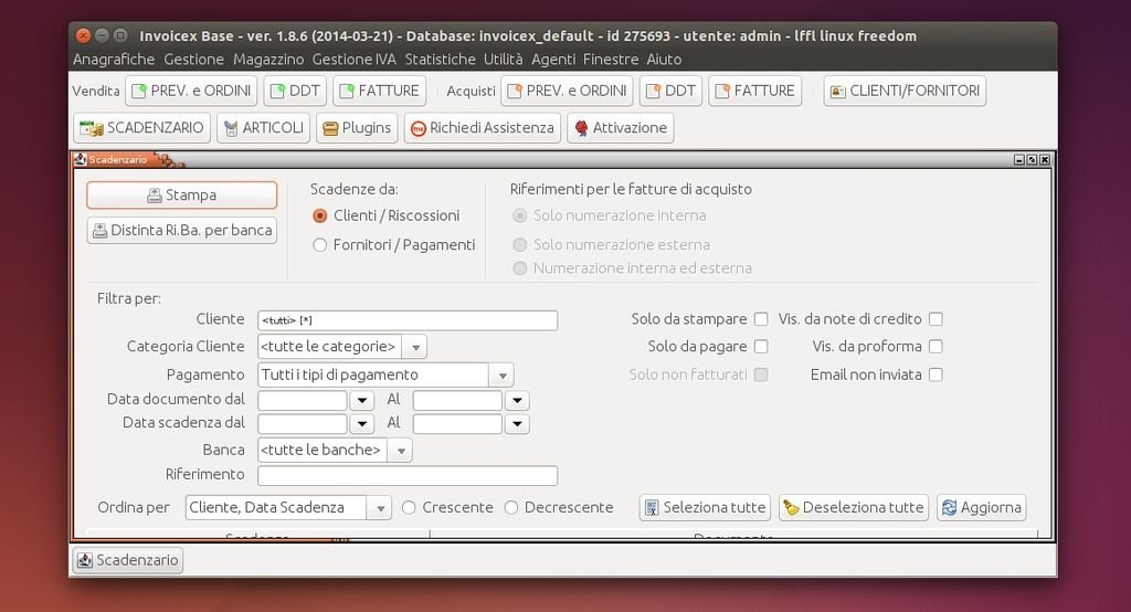 Invoicex è un software gestionale open source multi-piattaforma, sviluppato dalla società TNX, specifico per piccole e medie aziende, artigiani, liberi professionisti ecc. Attraverso Invoicex avremo a disposizione un software facile ed intuitivo con il quale gestire al meglio l’azienda dalla gestione del magazzino, ai preventivi, ordini, gestione delle fatture, contabilità e molto altro ancora. Possiamo installare e gestire Invoicex anche da remoto con dati centralizzati utilizzando MySql Server, il tutto senza la necessità di acquistare licenze aggiuntive, da notare inoltre l’ottima gestione della contabilità tramite prima nota in partita doppia, con piano dei conti personalizzabile in3 livelli con incluse utili funzionalità come la stampa di bilanci da data a data e altro ancora.