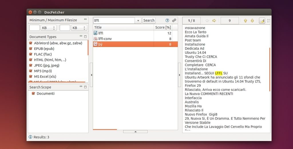 Grazie a DocFetcher potremo effettuare ricerche all’interno di