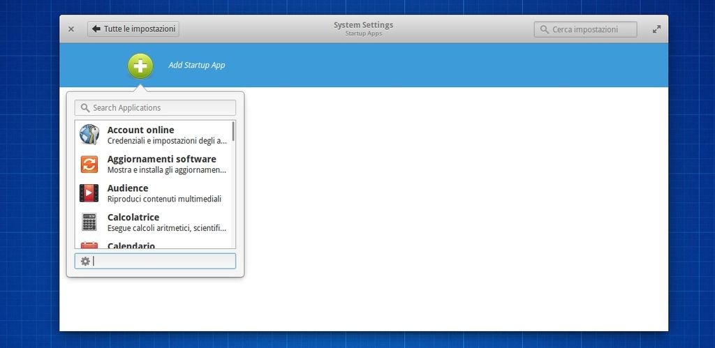 Cliccando sul pulsante “+” troveremo una finestra con elencate tutte le applicazioni installate nella distribuzione, presente anche un’utile barra di ricerca e nella parte inferiore troviamo la possibilità di inserire un comando da attivare facilmente all’avvio. Una volta impostata l’applicazione o script ecc da avviare all’avvio troveremo correlato un pulsante per attivare o meno l’avvio automatico e il pulsante “delete” per rimuovere il tutto.