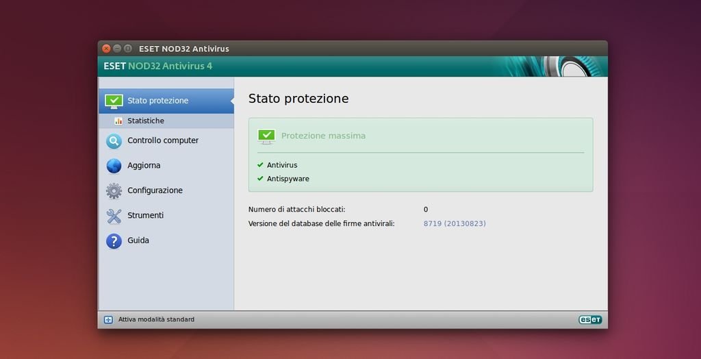 Possiamo testare Eset NOD32 nella nostra distribuzione Linux, scaricando l’installar dal sito ufficiale, successivamente potremo testare per 15 giorni il software per poi decidere se acquistarlo oppure rimuoverlo attraverso il collegamento nel menu.