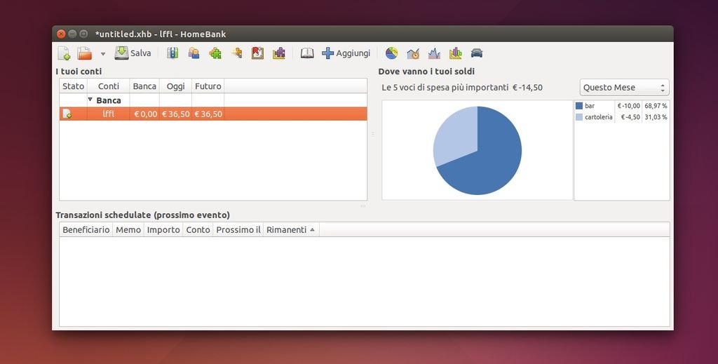 HomeBank è un software gestionale open source che ci consente di gestire al meglio le nostre finanze e contabilità domestica. Si differenzia da GnuCash non solo per l’interfaccia grafica ma anche per le numerose funzionalità incluse, oltre ad essere disponibile sia per Linux che Microsoft Windows Mac OS X e device mobili con Maemo. Attraverso HomeBank potremo facilmente tener traccia delle nostre spese ed entrate, come ad esempio le spese fisse (esempio bollette, affitto, rate ecc), gestire le scadenze e perfino collegarci alla nostro conto corrente e molto altro ancora. HomeBank è disponibile nei repository ufficiali delle principali distribuzioni Linux, gli sviluppatori inoltre hanno avviato il nuovo HomeBank Official PPA (stable) con il quale potremo mantenere aggiornato il software all’ultima versione stabile disponibile.