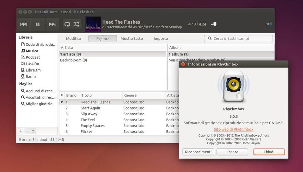 Per maggiori informazioni sul nuovo Rhythmbox 3.0.3 consiglio di consultare le note di rilascio disponibili in questa pagina.