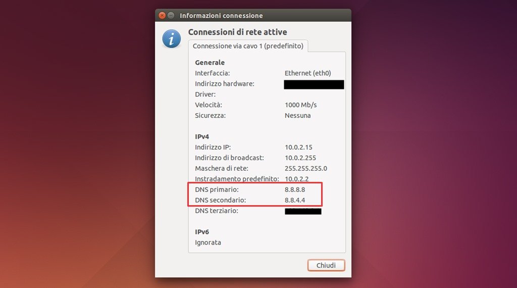 Possiamo impostare correttamente i DNS Google dal file resolv.conf digitando da terminale: