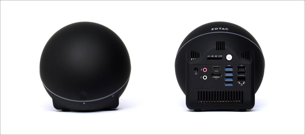 Incluso con Zotac ZBOX Sphere OI520 troviamo anche WiFi 802.11ac e Bluetooth 4.0, Gigabit Ethernet 10/100/1000Mbps, HDMI, Card Reader e 3 USB 2.0 (2 su pannello posteriore, 1 laterale) e 4 USB 3.0 sul pannello posteriore.