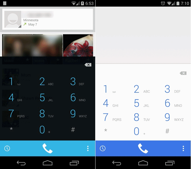 Come possiamo notare dalle immagini in basso, il nuovo Dialer di Android 4.4.3 include una nuova ed utile barra di ricerca, ottima anche la nuova scheda con i dettagli dell’ultimo contatto, da notare anche il nuovo pulsante “Tutti i Contatti” con un’elenco rivisitato per fornire una ricerca più veloce.