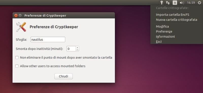 Cryptkeeper semplice apple per creare e gestire cartelle cifrate in Ubuntu Linux e derivate