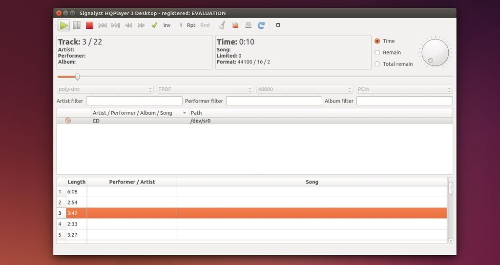 HQPlayer è disponibile solo per Ubuntu / Debian Linux grazie ai pacchetti deb per 32 / 64 bit, una volta scaricato ed installato il pacchetto basta avviare il player audio da menu.