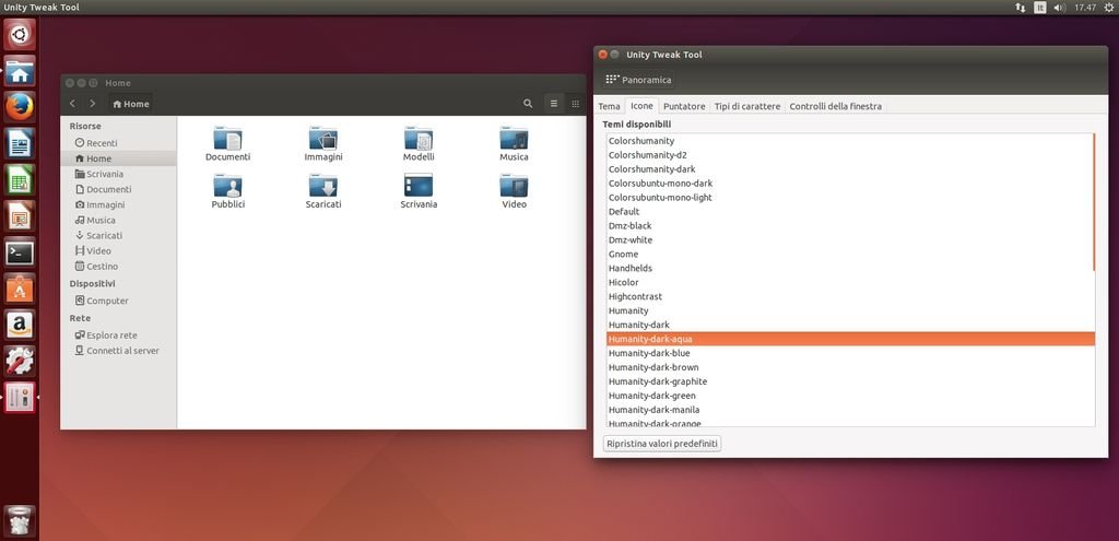 Per chi ama personalizzare il proprio ambiente desktop senza stravolgerlo sono disponibili nuovi temi e icone in grado di fornire una versione identica del set d’icone e temi di default di Ubuntu però con colore principale diverso. Tutto questo è possibile grazie ai progetti Ambiance e Radiance e Humanity Colors che ci consentono di avere i temi e icone di Ubuntu disponibili in varie colorazioni come blu, rosso, nero ecc in maniera tale da migliorare l’integrazione ad esempio con uno sfondo preferito ecc. Proprio in questi giorni è approdata la nuova versione 14.04.3 di Humaniti Color che porta con set tre nuove colorazioni consentendoci quindi di avere a disposizione il set d’icone di default di Ubuntu in 12 colorazioni diverse.