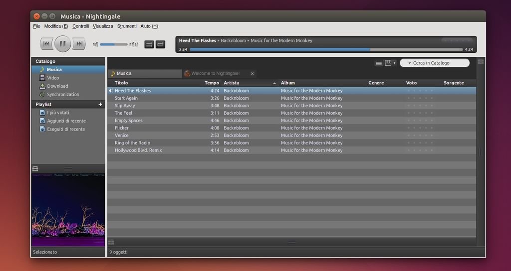 Nella versione in fase di sviluppo troviamo corretti diversi problemi con MPRIS, grazie alle ottimizzazione introdotte dai developer del progetto il player richiede minori risorse oltre ad essere molto più reattivo e veloce nell’avvio. Da notare inoltre le migliorie nella scansione dei file multimediali, la versione in fase di sviluppo di Nightingale consente un rapido accesso e ricerche anche in grandi raccolte di file audio.