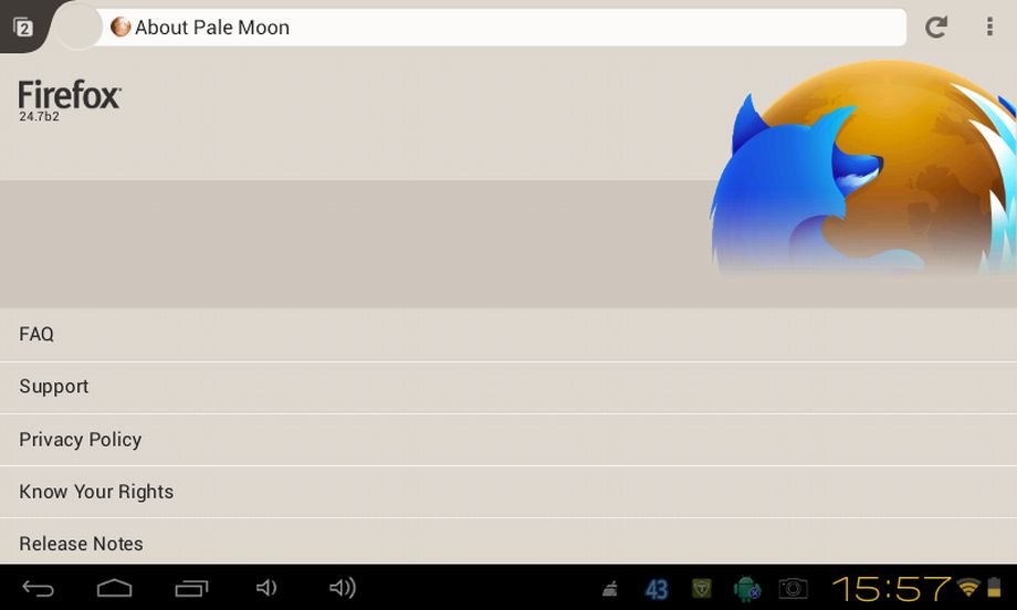 L’attuale beta di Pale Moon per Android si basa sull’attuale versione stabile di Firefox Mobile portando con se la stessa interfaccia grafica aggiungendo però alcune novità.