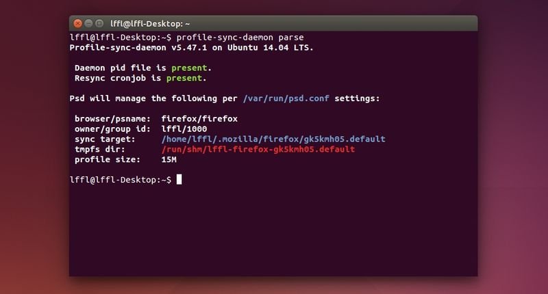Per verificare che Profile Sync Daemon funziona correttamente basta accedere alla directory /dev/shm) o /run/shm e verificare che siano presenti cartelle con il nostro nome e browser (esempio lffl-firefox).