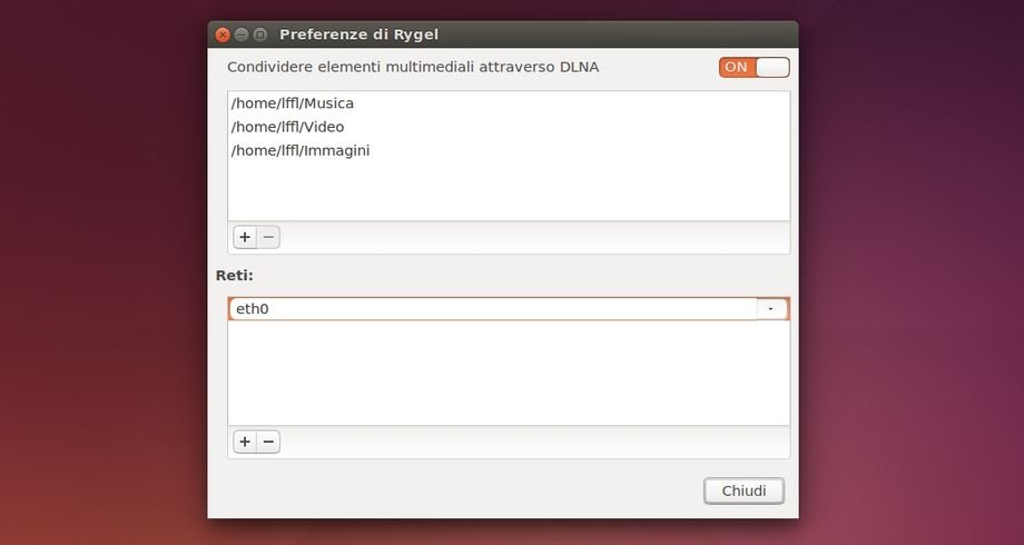 Per Ubuntu, Debian e derivate basta avviare da menu “Preferenze di Rygel” e da li importare le directory da condividere.