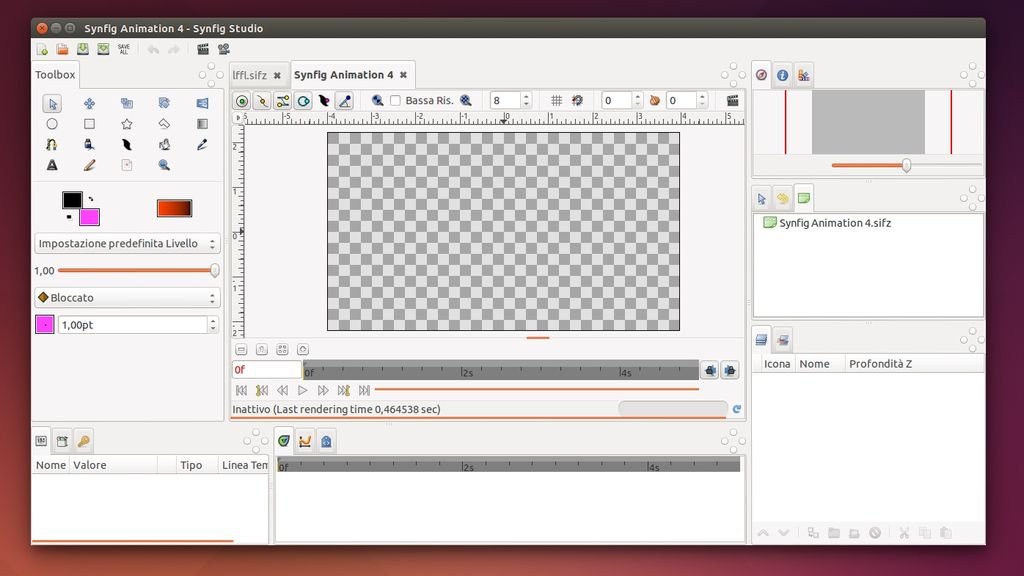 Come accaduto per Gimp, anche Synfig Studio include la possibilità di poter utilizzare il software d’animazione vettoriale 2D open source in modalità a singola finestra.