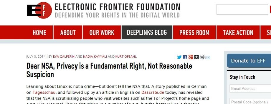 Molto probabilmente molti terroristi utilizzano sistemi anonimi come ToR, c’è da chiedersi perchè controllare anche il sito Linux Journal, portale navigato da utenti che cercano informazioni su distribuzioni Linux e software prevalente open source.