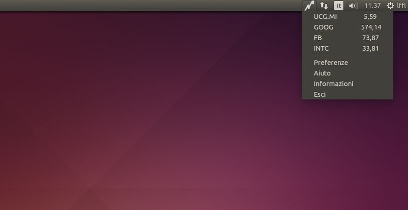 Indicator-Stocks è un semplice applet open source che ci consente di avere le quotazioni azionarie in tempo reale delle nostre azioni direttamente dal pannello di Unity, XFCE, LXDE ecc. Basta un click sull’applet per avere la quotazione attuale delle nostre azioni, basta un click su una quotazione per accedere dal nostro browser alle informazioni correlate grazie al portale Yahoo! Finanza.