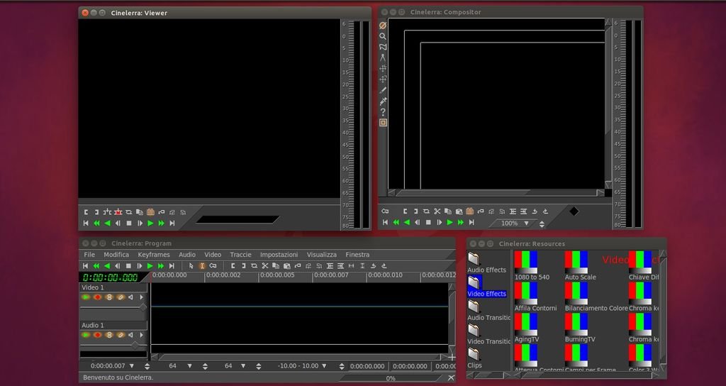 E avremo Cinelerra avviato, per i futuri avvii basta andare nella cartella cinelerra e dare un doppio click al file cinelerra.