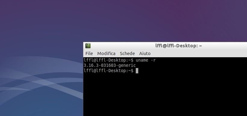 Al riavvio avremo il nuovo Kernel Linux 3.16.3, per verificarlo basta digitare da terminale uname -r (il risultato dovrà essere simile all’immagine in alto).
