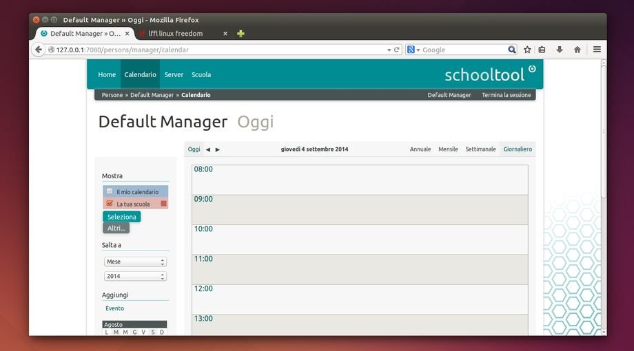 Una volta installato SchoolTool potremo avviare il registro elettronico da browser all’indirizzo: http://127.0.0.1:7080 per accedere alle impostazioni l’username è manager mentre la password è schooltool