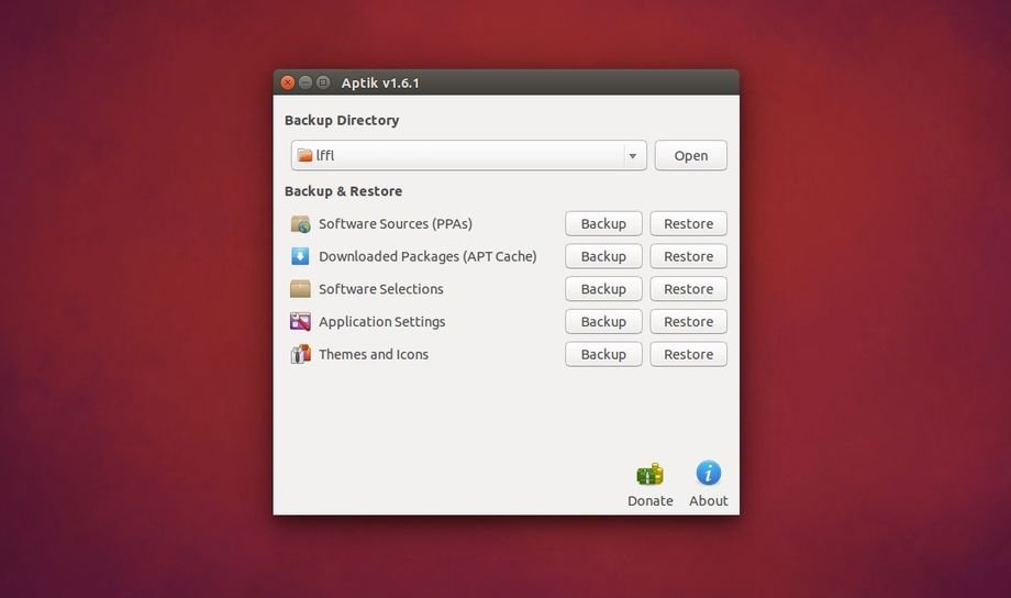 Aptik è un’utilissimo software che ci consente di effettuare il backup e ripristino dei applicazioni, giochi, temi ecc in Ubuntu e derivate ufficiali e non. Attraverso una semplice interfaccia grafica, Aptik ci consente di effettuare il backup delle nostre applicazioni preferite installate da repository ufficiali o terze parti oppure tramite un normale pacchetto per poterle reinstallare ad esempio in un nuovo pc o post-installazione di una nuova release (sempre che queste siano supportate). Aptik ci consente anche di effettuare il backup delle varie configurazioni, temi e set d’icone, repository di terze parti / PPA e ripristinare il tutto con estrema facilità. Lo sviluppo di Aptik sta rendendo il progetto sempre più completo e soprattutto affidabile, con la nuova versione 1.6 troviamo rimossa la toolbar, stando agli sviluppatori la rimozione consente di avere un’interfaccia grafica più “pulita” ed intuitiva.
