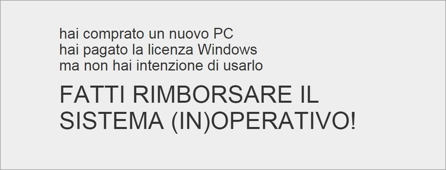 Italian Linux Society ha avviato la campagna “Fatti Rimborsare il Sistema (in)Operativo!” per sensibilizzare gli utenti a farsi rimborsare la licenza di Microsoft Windows.