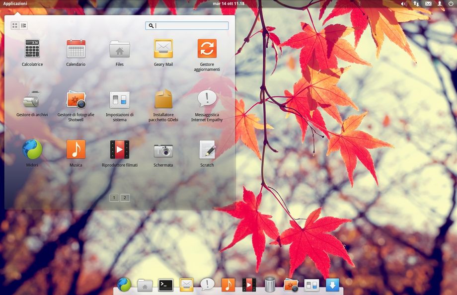 Tra i vari temi disponibili per elementary OS troviamo anche “Trasparent”, tema che ci consente di avere un pannello più trasparente compreso anche lo sfondo dei menu, Slinghot ecc.