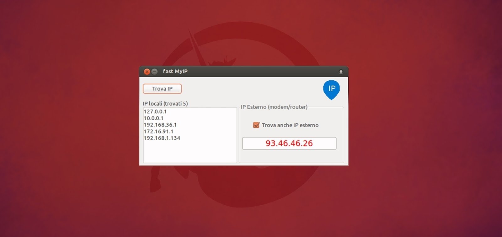 Per gli utenti che non amano molto operare sul terminale Linux, è disponibile FAST MyIP, utile software per Linux, Windows e Android con il quale potremo avere informazioni sull’indirizzo IP locale (compreso IPv4 e IPv6) e pubblico con un semplice click.