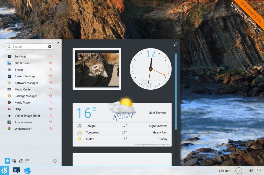 Il designer Ken Vermette ha rilasciato alcuni concept riguardanti KDE con un funzionalità molto simili al nuovo Microsoft Windows 10.