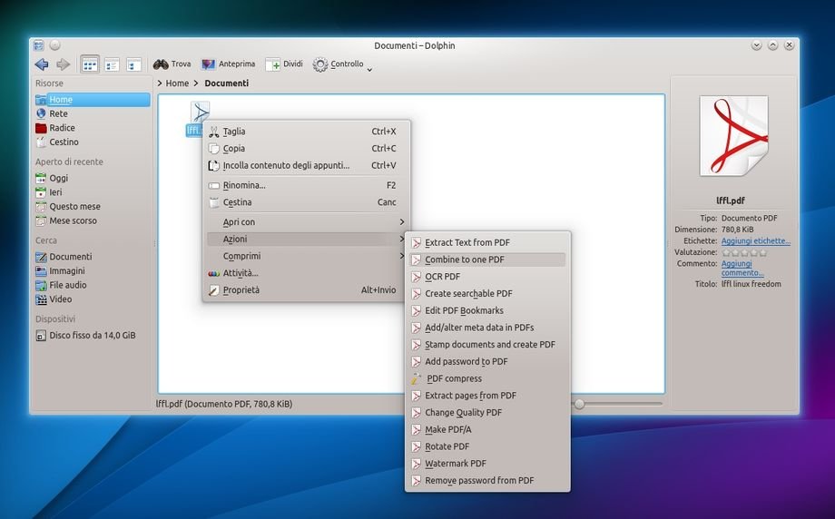 pdfForts è una raccolta open source di Service Menu per Dolphin con la quale potremo operare facilmente nei documenti PDF da menu contestuale del file manager.