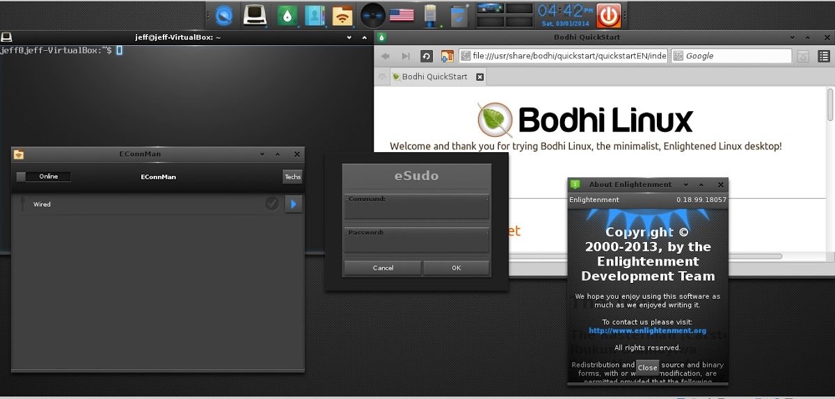 Bodhi Linux 3.0 RC2 si basa su Ubuntu 14.04 Trusty LTS includendo però di default Enlightenment E17 ambiente desktop che verrà ottimizzato soprattutto per l’utilizzo da parte di personal computer datati. L’idea di Bodhi Linux 3.0 è quella di portare una maggiore stabilità e un ambiente desktop completo ma allo stesso tempo molto leggero. Ricordo che Bodhi Linux 3.0 RC2 include ancora diversi bug, che verranno molto probabilmente risolti al rilascio della versione stabile.