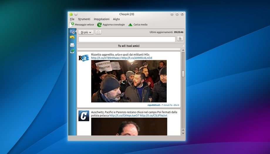 Ad un anno e mezzo dal precedente aggiornamento, è finalmente disponibile Choqok 1.5, nuova versione del famoso client di messaggistica istantanea con interfaccia grafica Qt, ottimizzato per per KDE. Choqok 1.5 oltre alla correzione di alcuni bug, include importanti novità a partire dal supporto per Pump.io noto social network decentralizzato interamente open source sviluppato per garantirci la nostra sicurezza e privacy (per maggiori informazioni). Con il nuovo Choqok 1.5 arriva il supporto per visualizzare le immagini di Twitter e plugin per espandere gli url dal portale UnTiny.