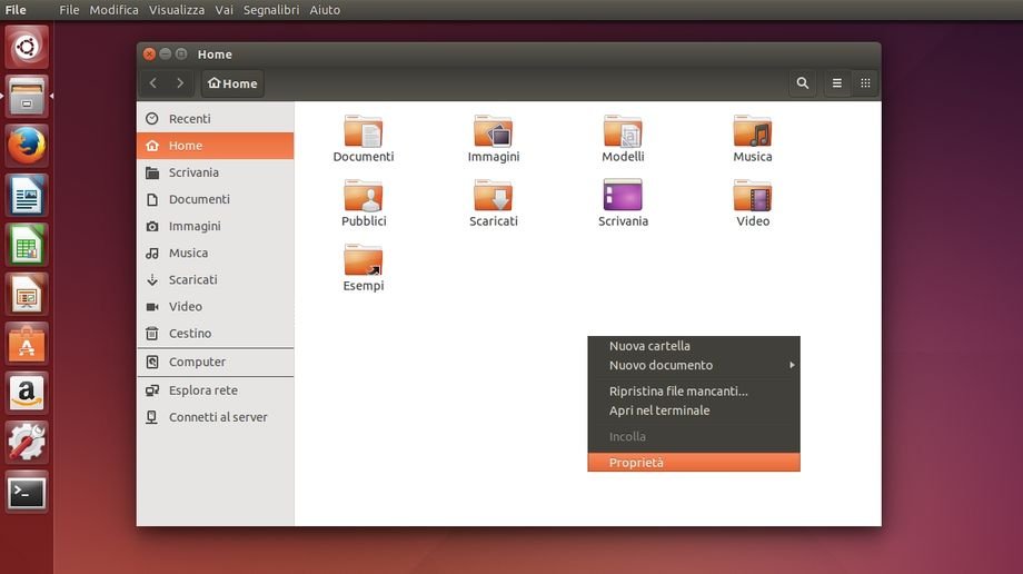 a questo punto avviamo il file manager Nautilus e selezioniamo una cartella e clicchiamo con il tasto destro del mouse.