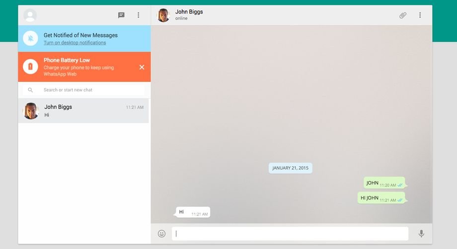 Dopo alcuni secondi potremo utilizzare WhatsApp da browser, da notare che la versione web fornisce le stesse funzionalità dell’applicazione mobile con la possibilità di inviare foto, video ecc oltre a notificarci il ricevimento di nuovi messaggi.