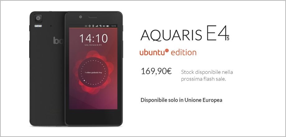 BQ Aquaris E4.5 Ubuntu Edition è disponibile dal portale BQ Italia a 169,90€.
