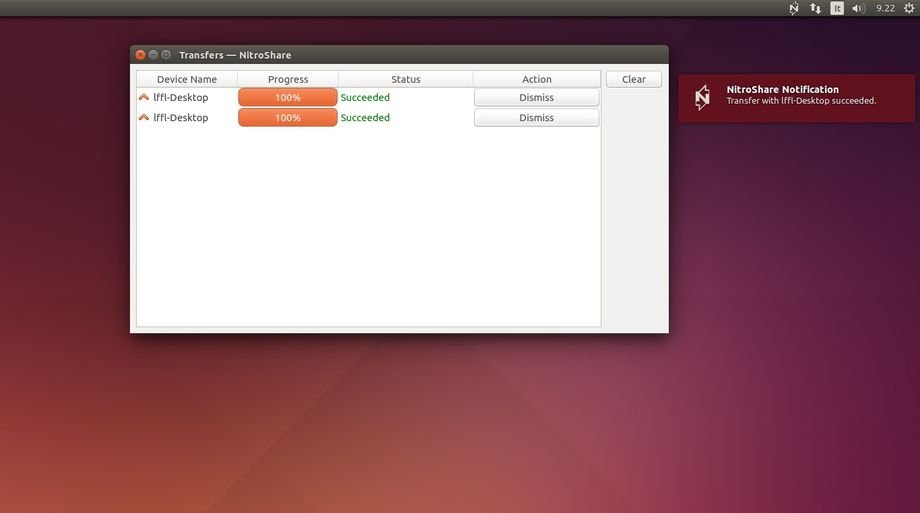 NitroShare 0.3 dice addio al wizard di configurazione, migliora il supporto per il collegamento nel pannello in Unity e Cinnamon, la nuova versione consente di riconoscere automaticamente i vari pc collegati alla nostra rete che utilizzano NitroShare. Con il nuovo NitroShare 0.3 troviamo rimosso il limite massimo per l’invio di file inoltre è stata inserita la nuova opzione che ci consente di riavviare il trasferimento dopo il completamento.