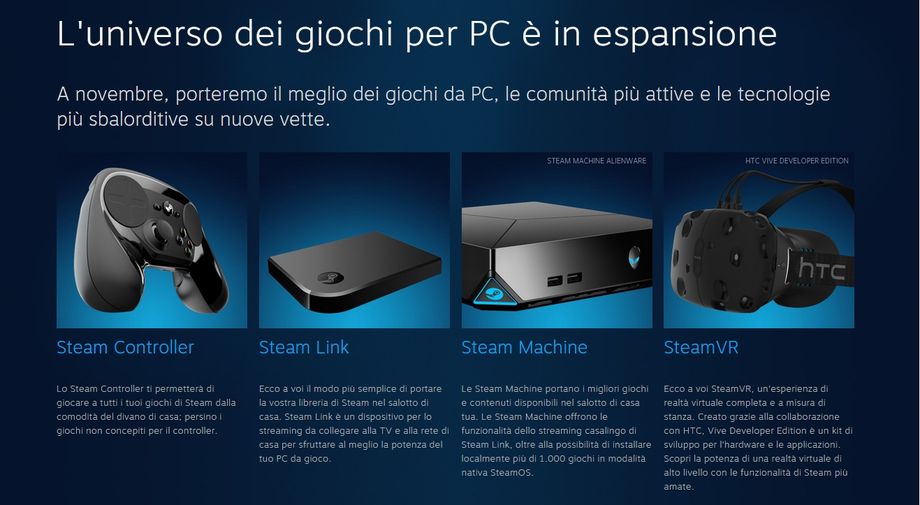 Sia Steam Link, Steam Machines, Steam Controller e SteamVR saranno disponibili dal prossimo novembre, in questi mesi dovrebbero approdare inoltre diverse ottimizzazioni riguardanti anche il sistema operativo SteamOS novità che andremo ad analizzare in dettaglio nei prossimi articoli.
