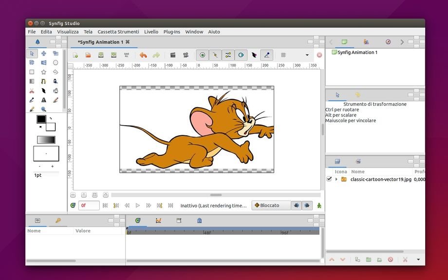 Synfig Studio 1.0 migliora i vari strumenti e aggiunge nuove features, la nuova versione ci consente di poter applicare deformazioni complesse alla grafica bitmap che utilizzano il nuovo livello Skeleton Distortion. Debutta il nuovo strumento di ritaglio che consente la modifica non distruttiva, possiamo quindi ripristinare una parte accidentalmente ritagliata, migliora anche la parte audio con nuovi strumenti per sincronizzazione l’animazione con la colonna sonora. Per maggiori informazioni su Synfig Studio 1.0 consiglio di consultare le note di rilascio disponibili in questa pagina.